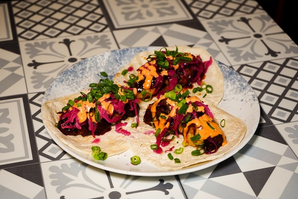 3x placek kukurydziany/ kalafior w panko/ korean bbq/ czerwona piklowana kapusta/ chipotle mayo